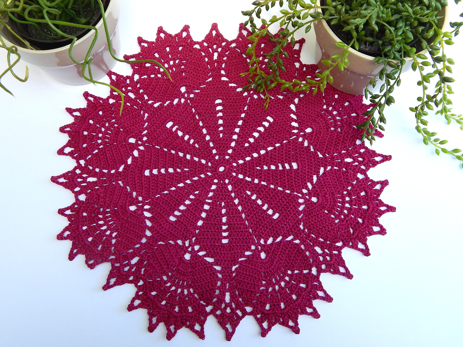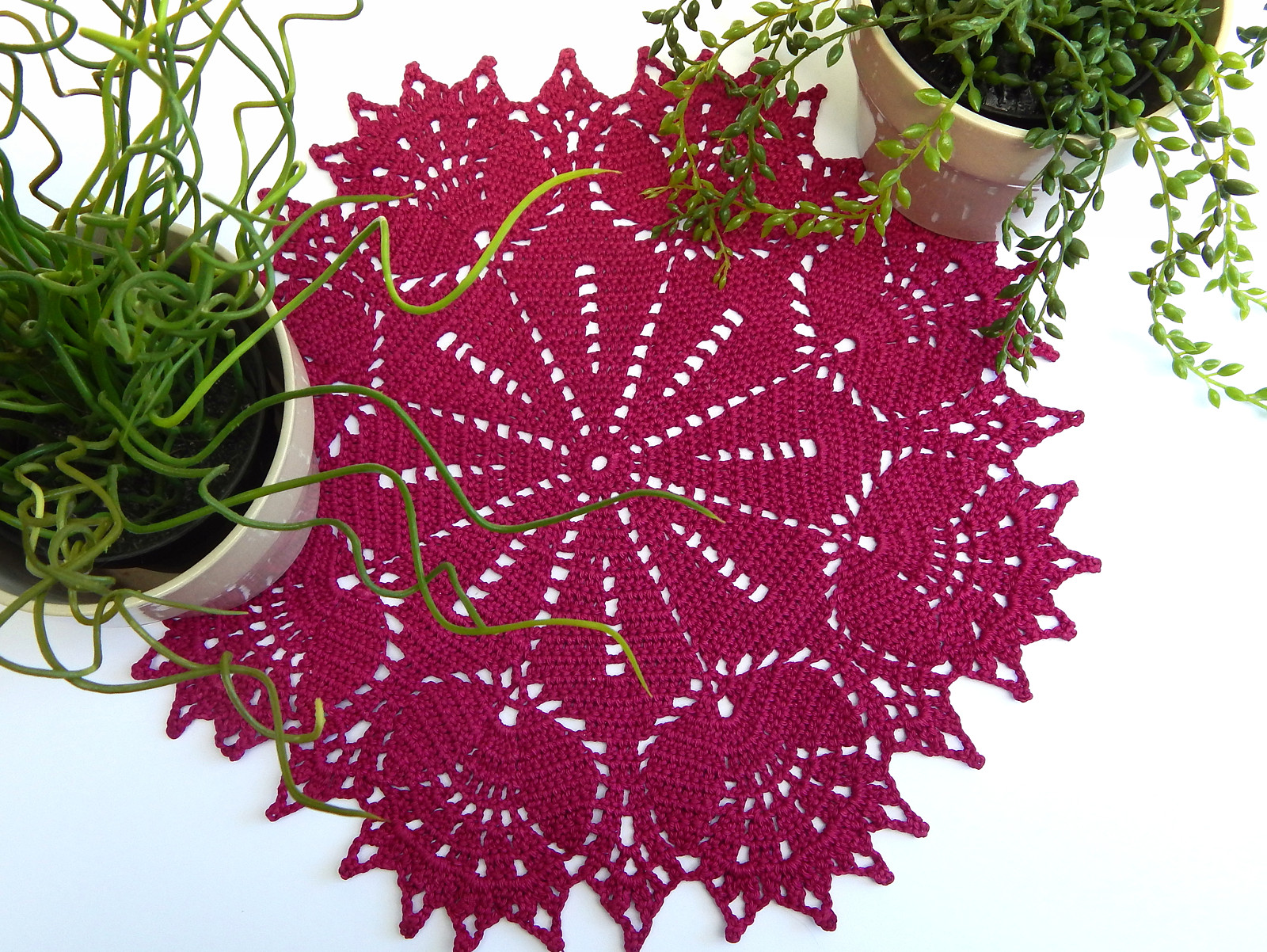 Propracovaná geometrie: Středový motiv plynule přechází v bohatou krajku s ozdobnými špičkami, což dece dodává na hloubce a zajímavosti.