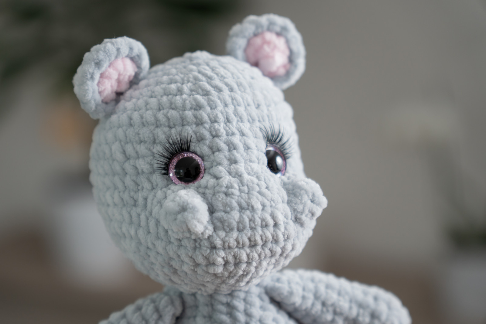 Celé tělíčko je uháčkováno z prvotřídní, sametové plyšové příze, která je hřejivá a příjemná k pohlazení. Jeho objemný tvar je ideální pro pevné dětské objetí. Hroch zaujme svými jemnými růžovými detaily uvnitř oušek a především svými dlouhými, hravými řasami, které mu propůjčují nezapomenutelný, elegantní pohled. Je to plyšák s osobností!