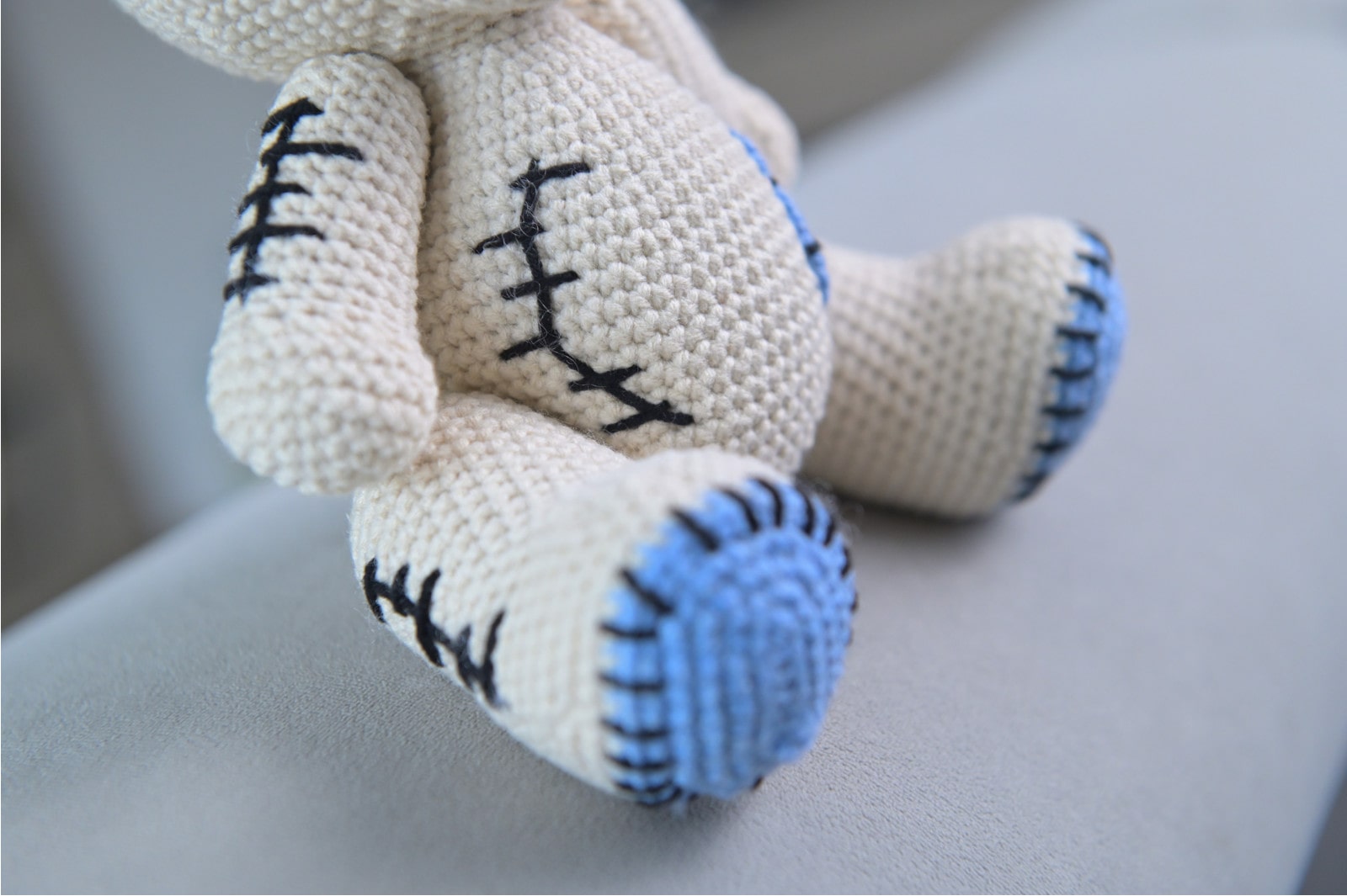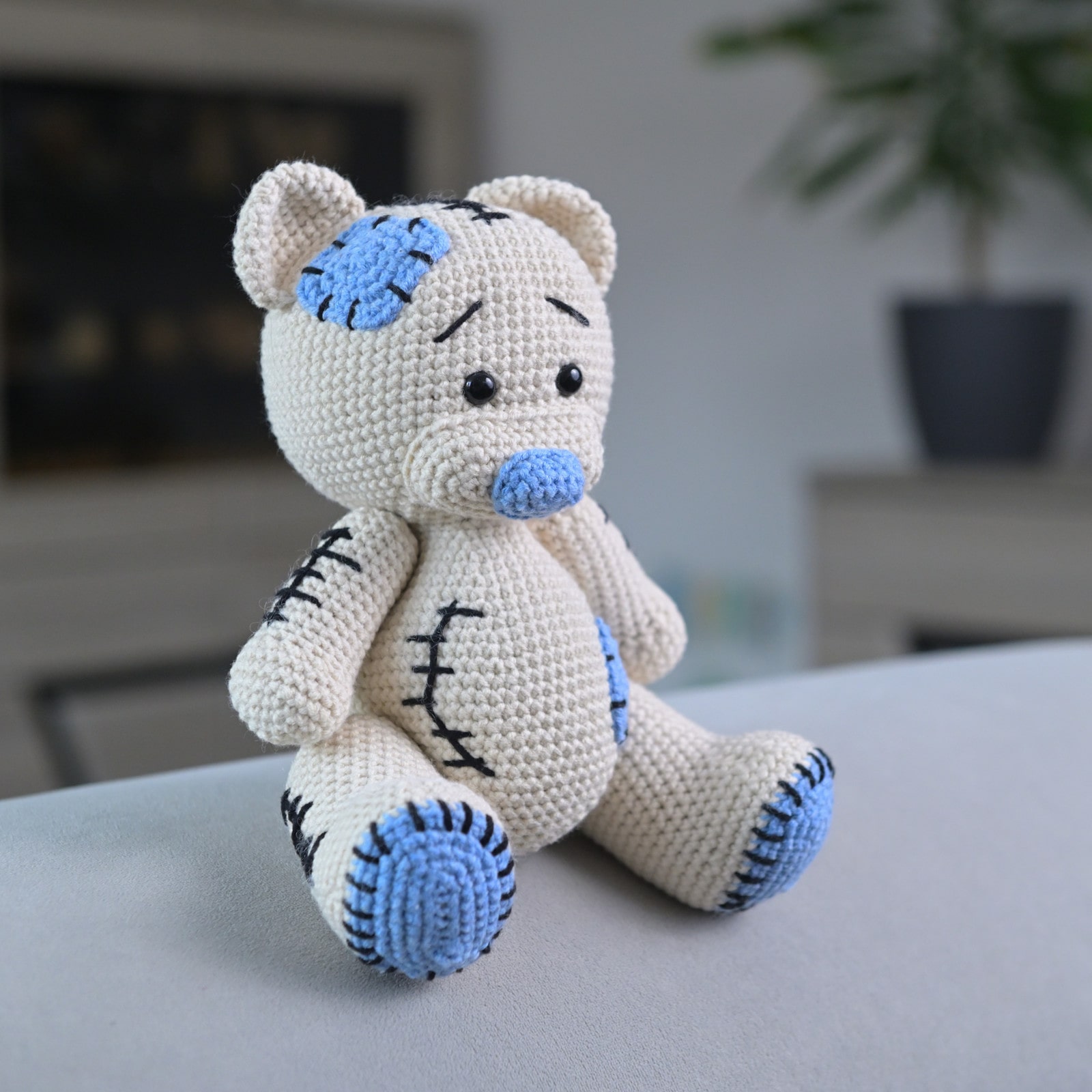 Originální a roztomilý společník pro malé i velké. Tento ručně háčkovaný medvídek se „sešívaným“ designem je vyroben z měkké a kvalitní příze. Každý kus je unikátní originál vytvořený s láskou. Perfektní jako dárek nebo jedinečný doplněk do dětského pokoje.