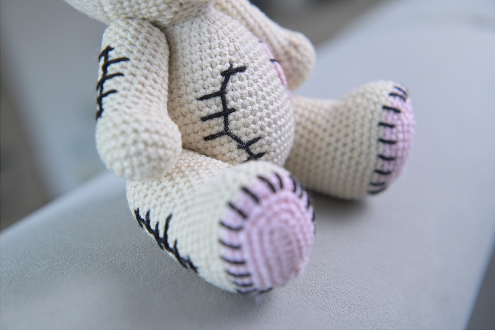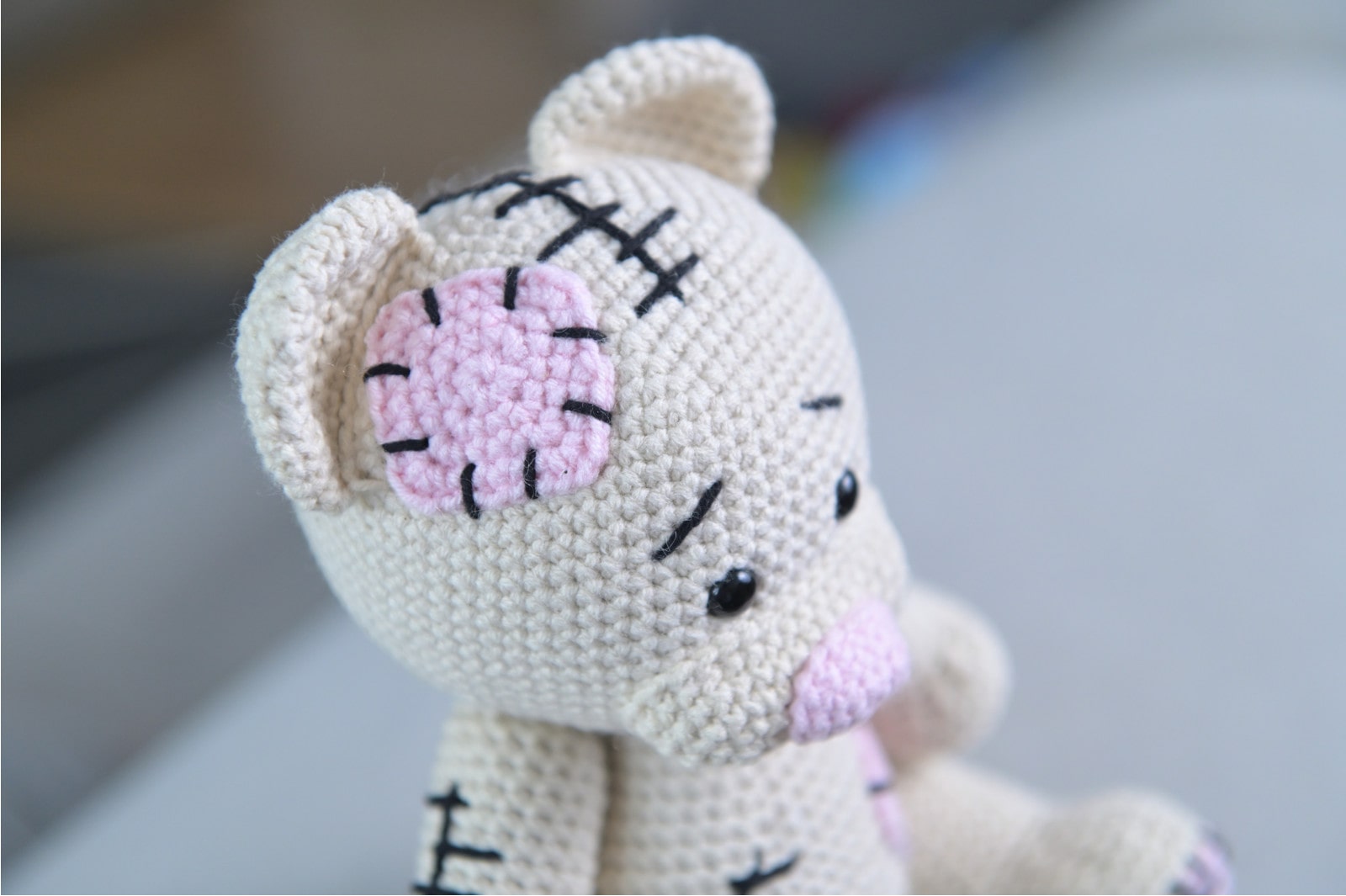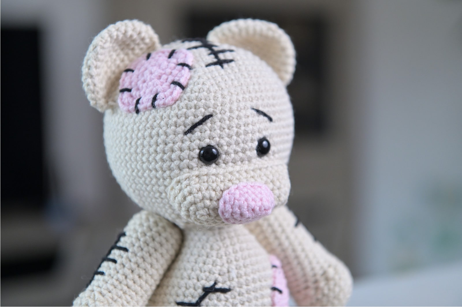 Originální a roztomilý společník pro malé i velké. Tento ručně háčkovaný medvídek s „sešívaným“ designem je vyroben z měkké a kvalitní příze. Každý kus je unikátní originál s láskou vytvořený. Perfektní jako dárek nebo jedinečný doplněk do dětského pokoje.