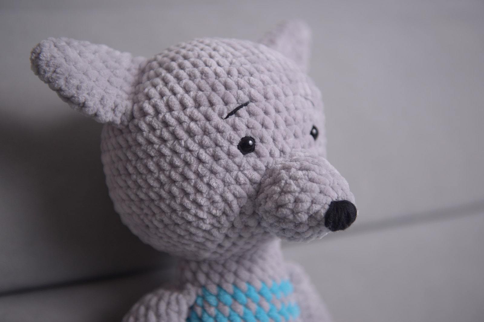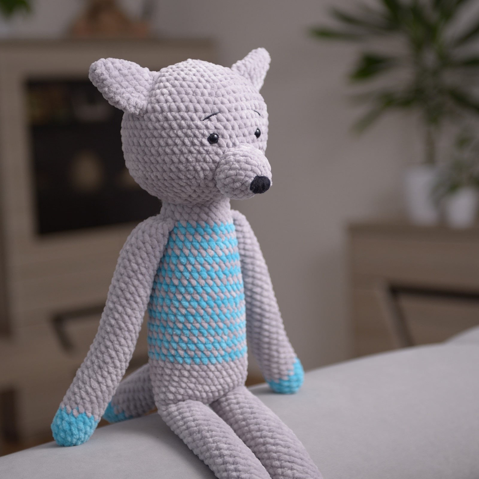 Vlk je háčkován z luxusní plyšové příze, která věrně napodobuje jeho kožíšek, ale je jemná jako obláček. Jeho větší rozměry z něj dělají dokonalého partnera pro velká objetí. Tento Vlk je ideální dárek pro všechny, kteří milují ruční práci, oceňují zvířecí symboliku nebo hledají exkluzivní kousek, který okamžitě upoutá pozornost a vnese do pokoje pohádkovou atmosféru.